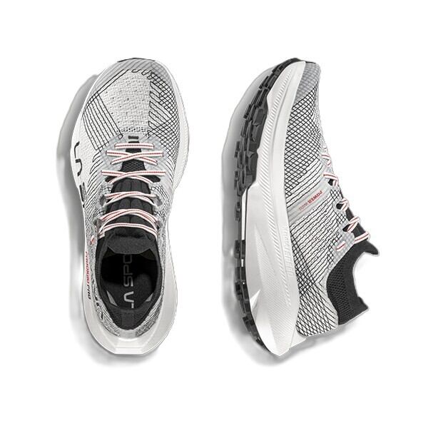 特筆すべきは、窒素注入TPUとEVAを組み合わせた新開発ミッドソール。驚異的なクッション性と反発力を両立し、長距離でも足への負担を軽減しながら、エネルギーを推進力に変えてくれます。